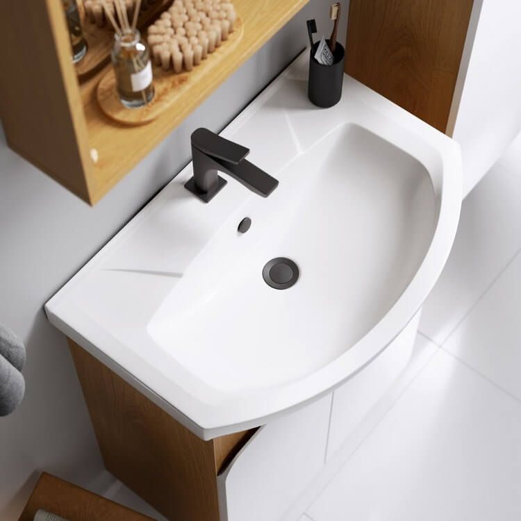 Тумба напольная с раковиной Aqwella Basic 65 см BAS0106DZ, дуб золотой/белый