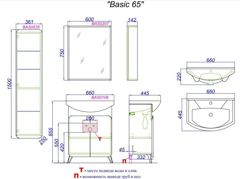 Характеристики тумба с раковиной Aqwella (BAS0106DZ)