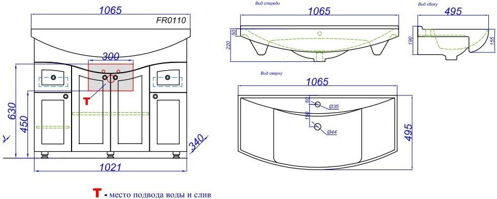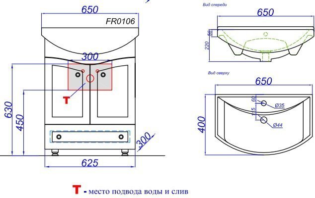 Характеристики тумба с раковиной Aqwella (FR0106)