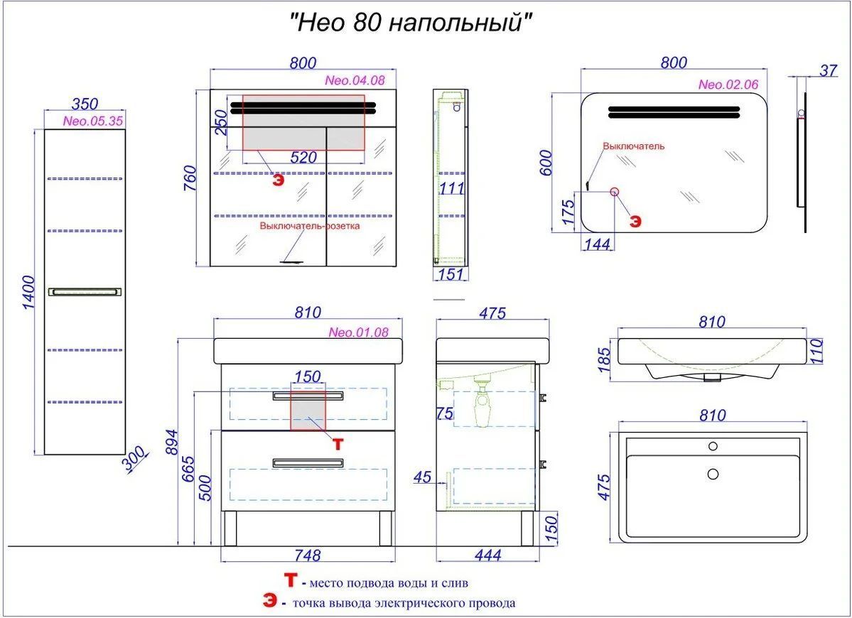 Характеристики тумба с раковиной Aqwella (NEO0108)