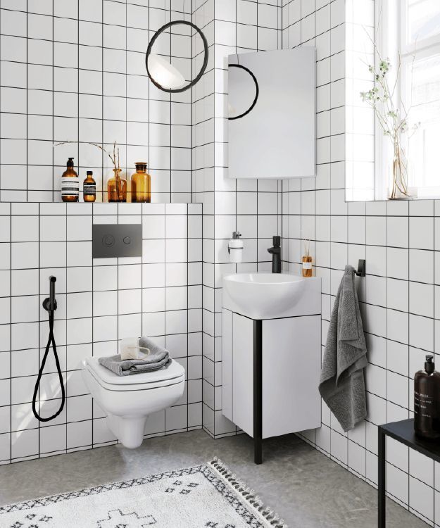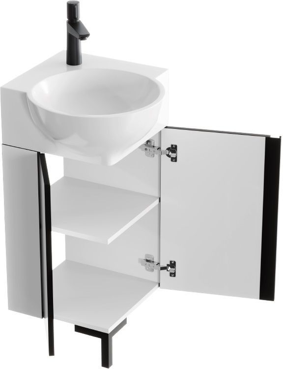 Тумба напольная Aqwella Porto 45 см с раковиной дельта 46 см, цвет белый/чёрный.
