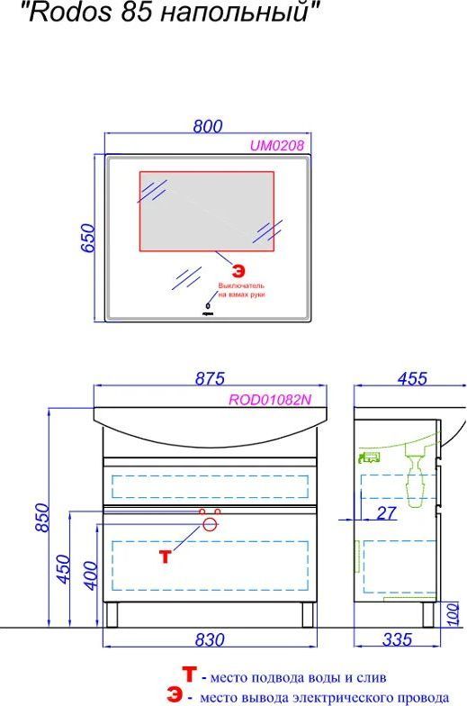 Характеристики тумба с раковиной Aqwella (ROD01082N)