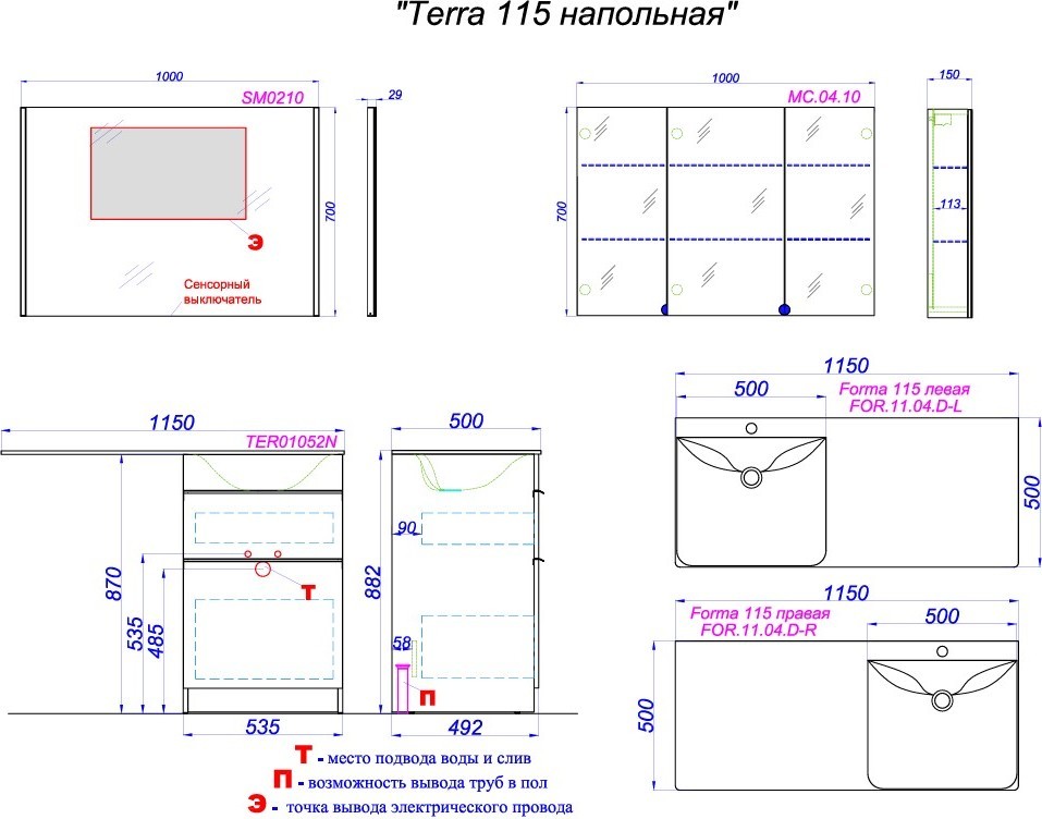 Описание тумба с раковиной Aqwella TER01052NDBR