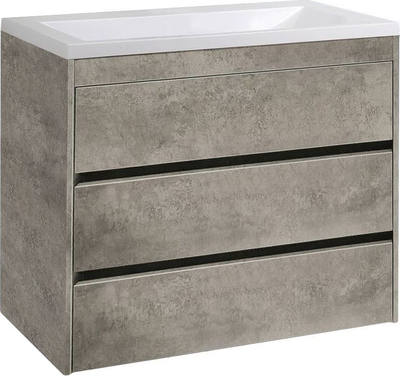Тумба напольная Art&Max Family 100 см с раковиной AM-LAV-1000-MR-A, 3 выдвижных ящика, направляющие скрытого монтажа Боярд, полного выдвижения с доводчиками, нижний ящик - детская ступенька, цвет цемент.