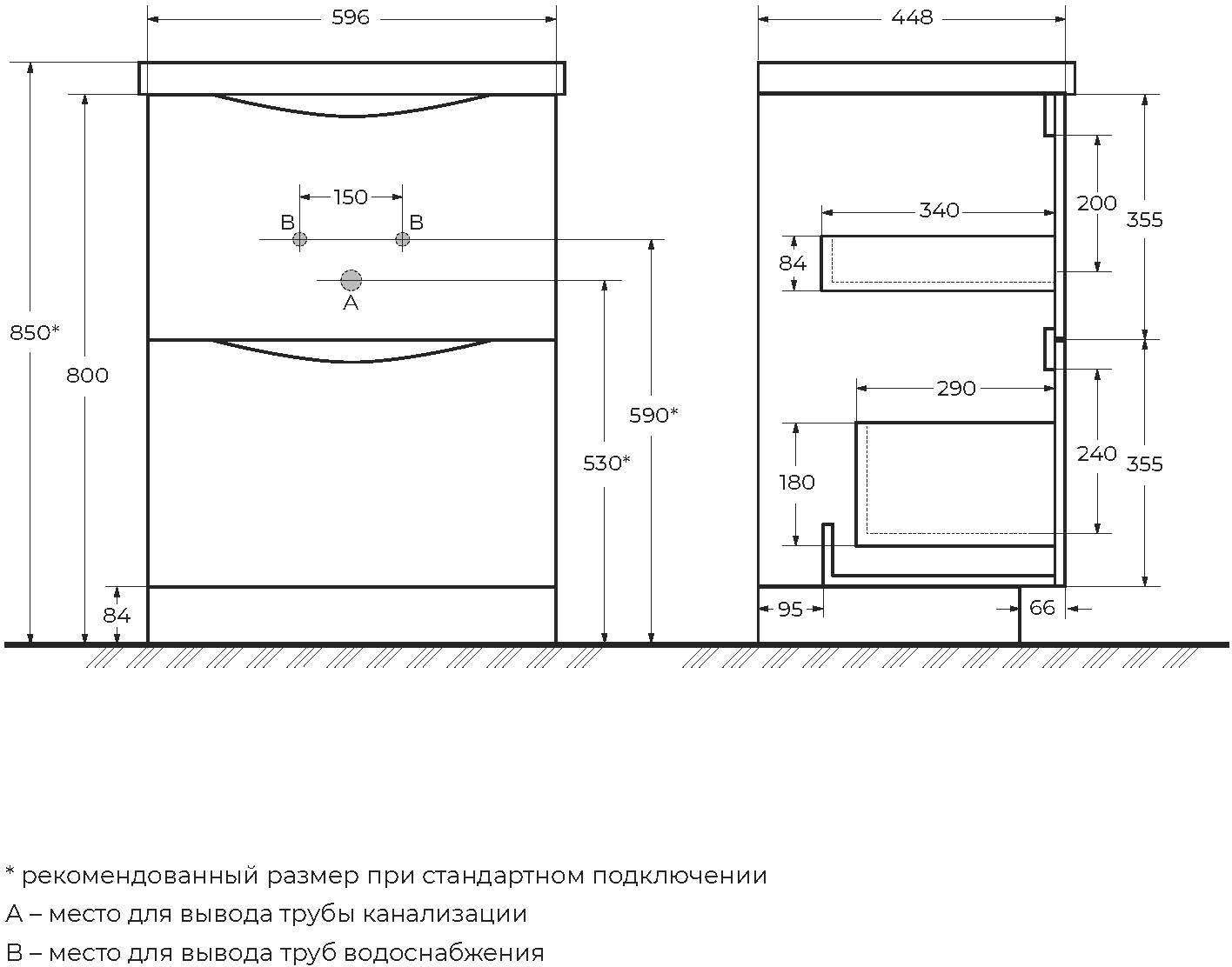 Характеристики тумба с раковиной BelBagno (MARINO-600-2C-PIA-BL-P;BB600/450-LV-MR-AST)