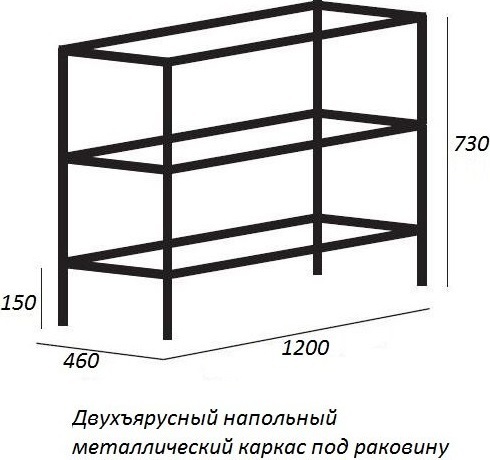 - двухъярусный напольный стальной каркас под раковину (Сварной), CADRO-120/46/73-2C-PIA-MET-ST, цвет - черный