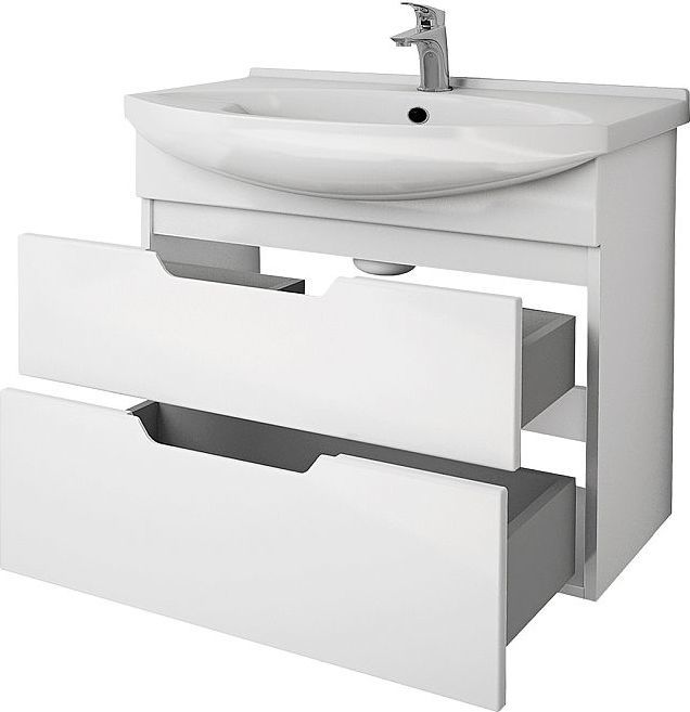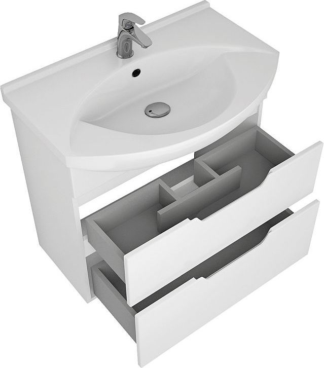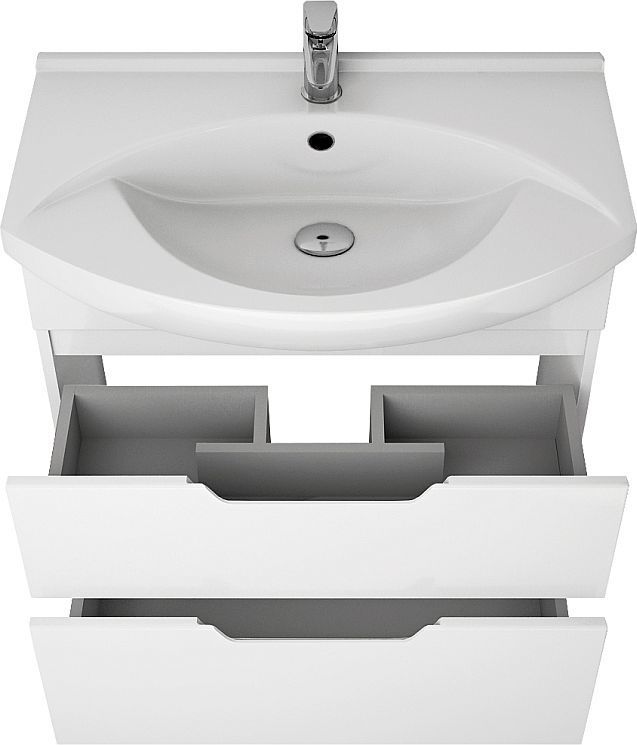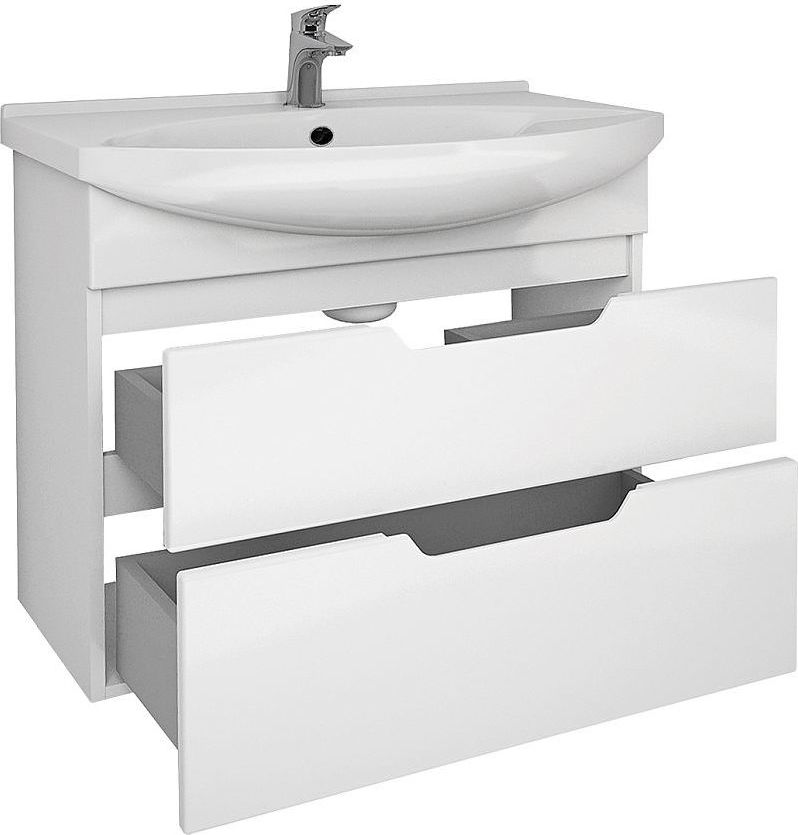 Тумба напольная Dreja Laguna 75 см с раковиной Laguna 75 см, 2 ящика, цвет белый глянец.