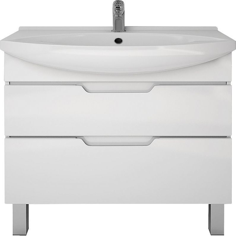 Тумба напольная Dreja Laguna 85 см с раковиной Laguna 85 см, 2 ящика, цвет белый глянец.