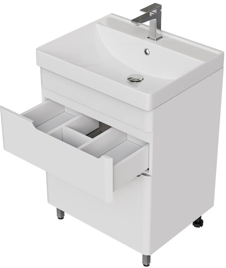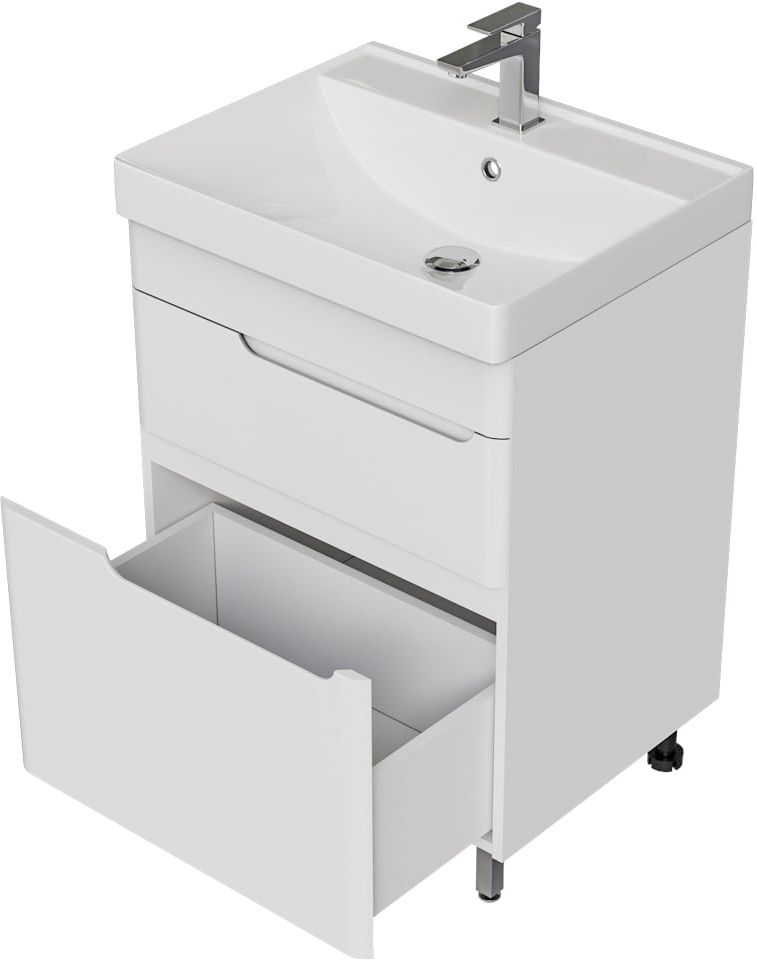 Тумба напольная с раковиной Mirsant Flat 60/2 60 см (раковина Line 60) белый