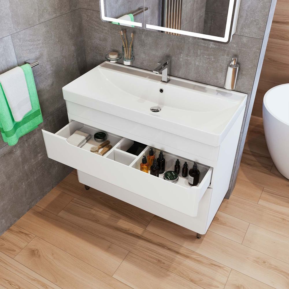 Тумба напольная с раковиной Mirsant Flat 60/2 60 см c раковиной Line 60, цвет белый.