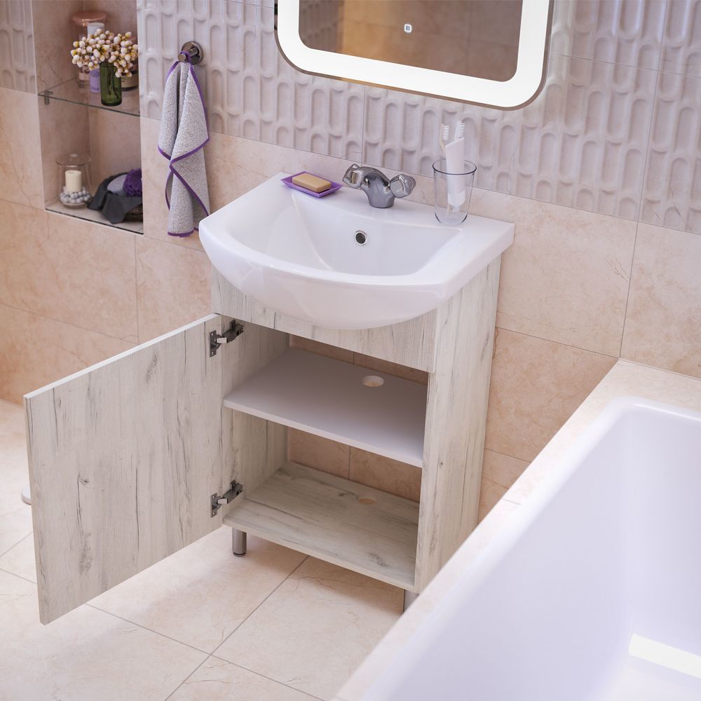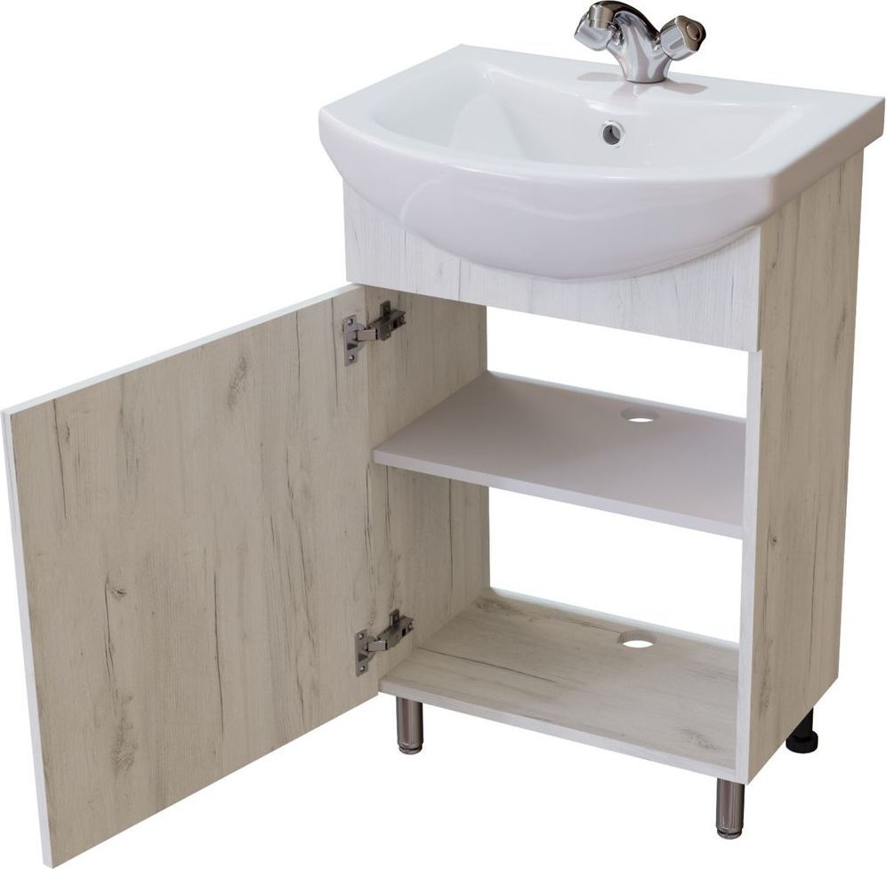 Тумба напольная с раковиной Mirsant Grace 55 см с раковиной Балтика 55, дуб белый (тумба идёт в разобранном виде)