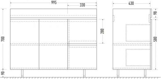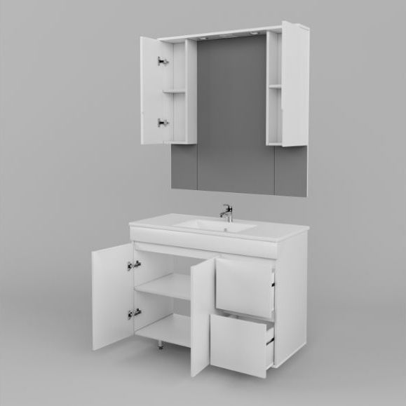 Тумба напольная Mirsant Next 100 см с раковиной Premier 1000, 2 дверцы, 2 ящика, цвет белый.