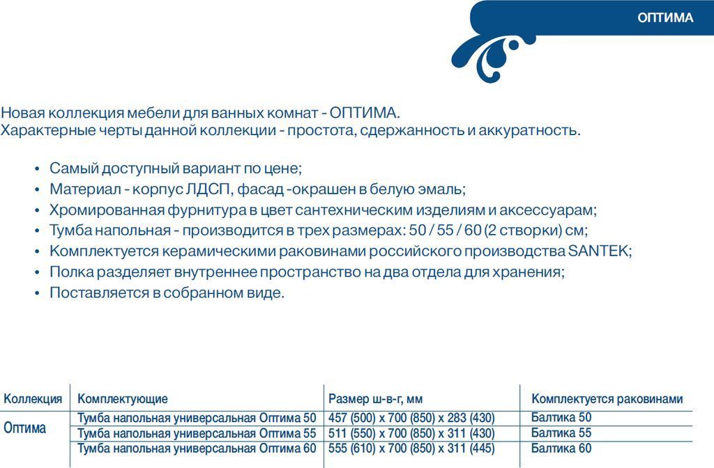 Тумба напольная Mirsant Оптима 50 см с раковиной Балтика 50, цвет белый.