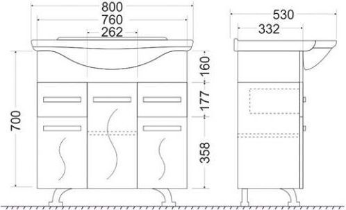 Характеристики тумба с раковиной Mirsant (УТ000043337+УТ000002332)