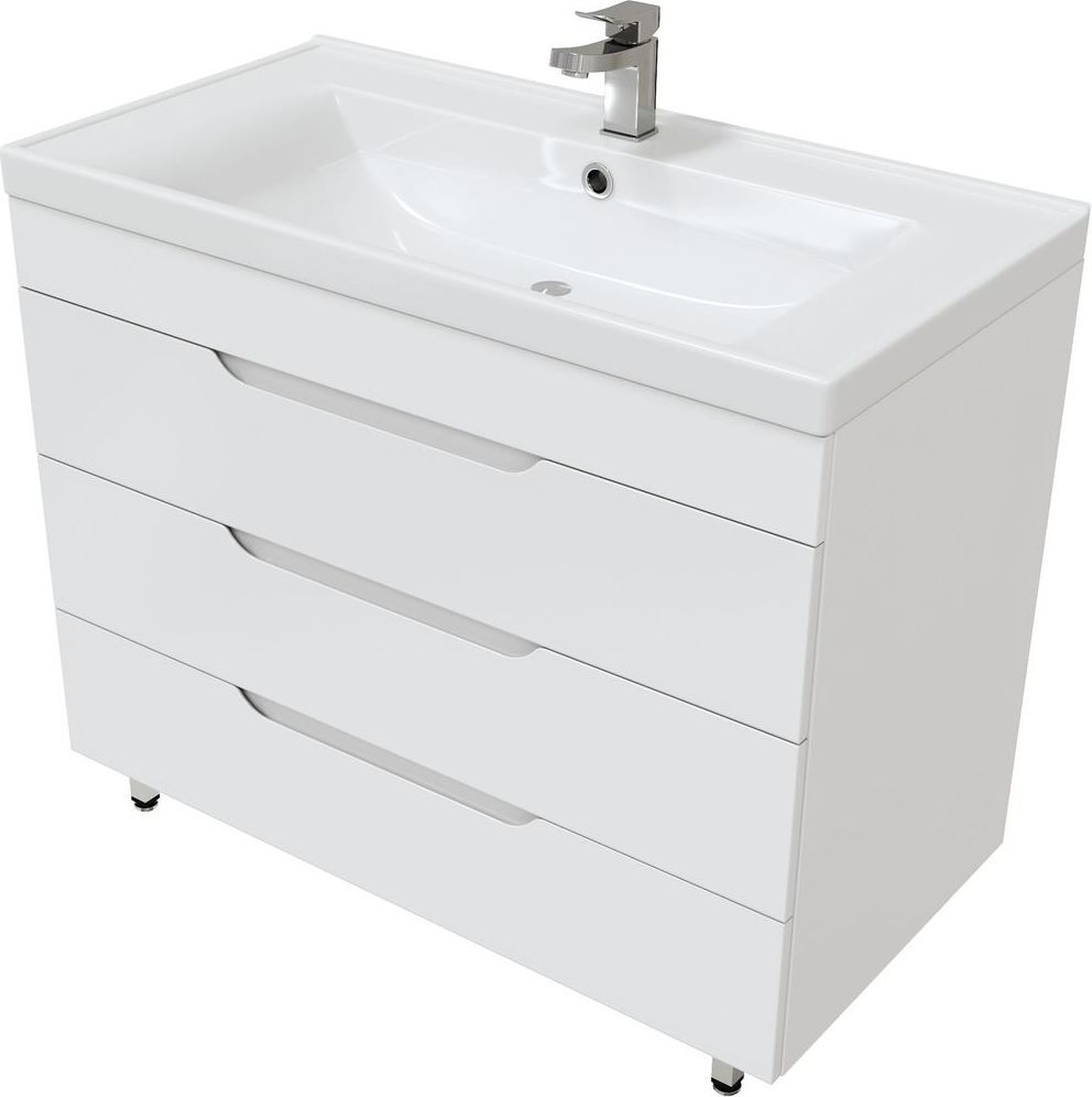 Тумба напольная Mirsant Soho Quadro 100 см с раковиной Deep-100, цвет белый.