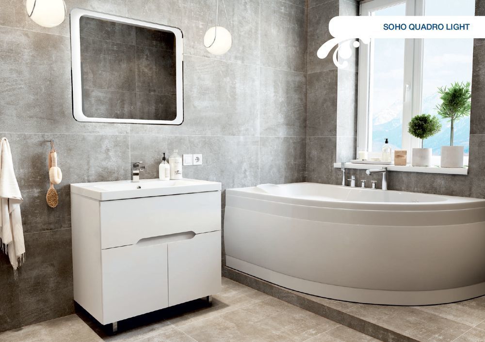 Тумба напольная Mirsant Soho Quadro Light 80 см с раковиной Deep 80, цвет белый.