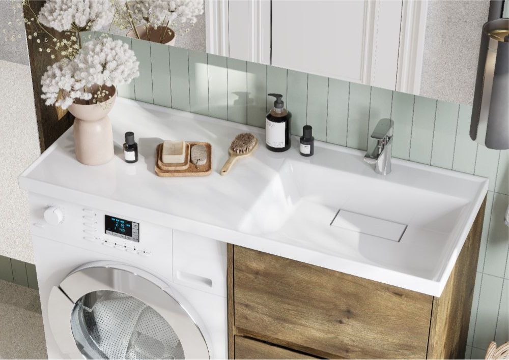 Тумба напольная Акватон Лондри 60 см с раковиной-столешницей Лондри 120 см, цвет дуб рустикальный.