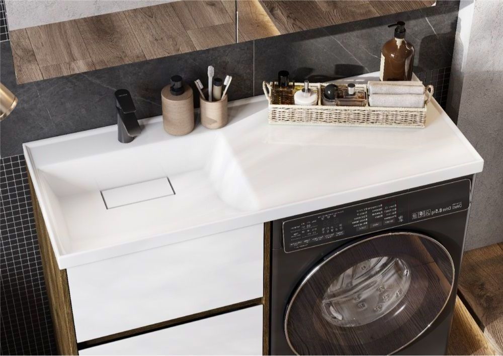 Тумба напольная Акватон Лондри 60 см с раковиной-столешницей Лондри 120 см, цвет дуб рустикальный/белый.