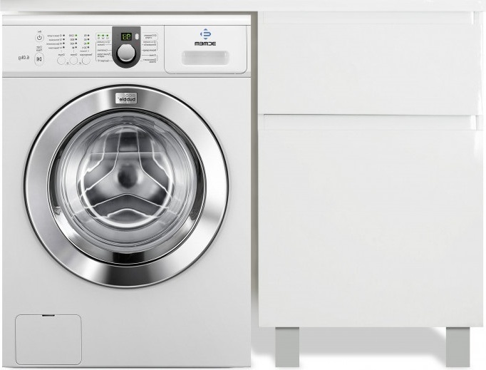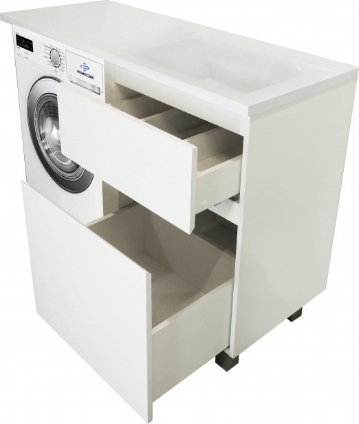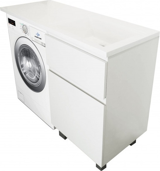 - Стиральная машина устанавливается под столешницей, за счет чего экономит место в ванной комнате.
