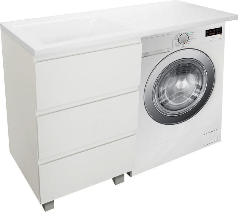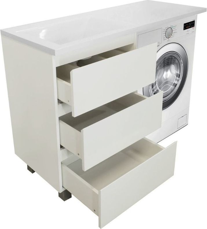 - Стиральная машина устанавливается под столешницей, за счет чего экономится место в ванной комнате.