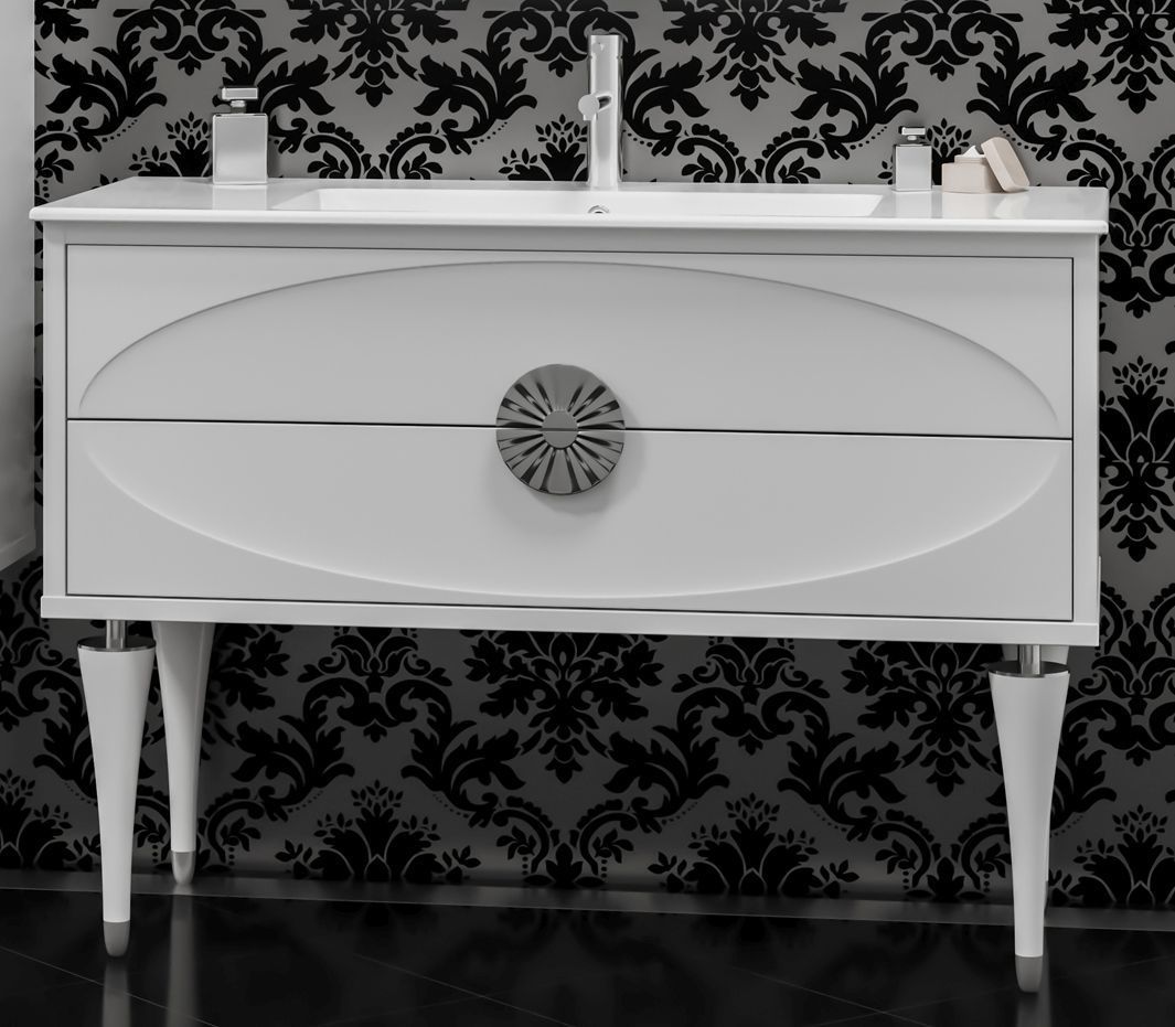 Тумба напольная Smile Ибица 90 с раковиной Ibiza 91, 2 ящика, ножки и ручки из массива бука, цвет белый глянец/хром.
