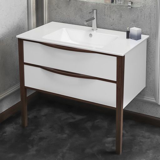 Тумба напольная Smile Риголетто 90 с раковиной Ibiza 91, 2 ящика, ручки и ножки выполнены из массива бука, цвет белый глянец/светлый орех.
