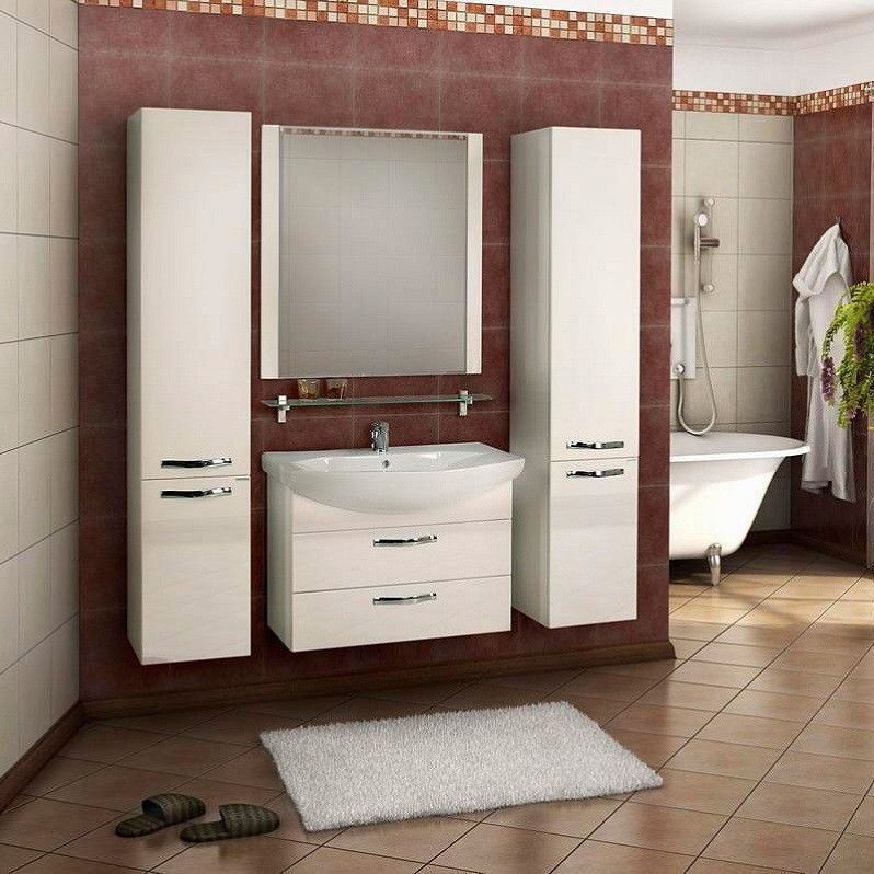 Тумба подвесная Акватон Ария 80М с раковиной Smile 80 см, цвет белый.
