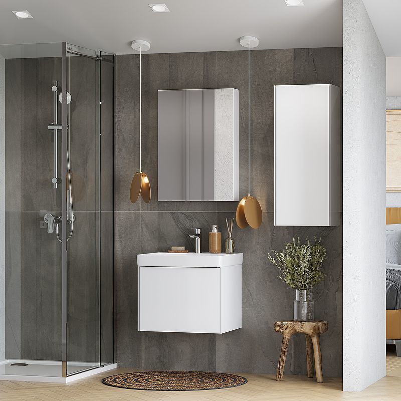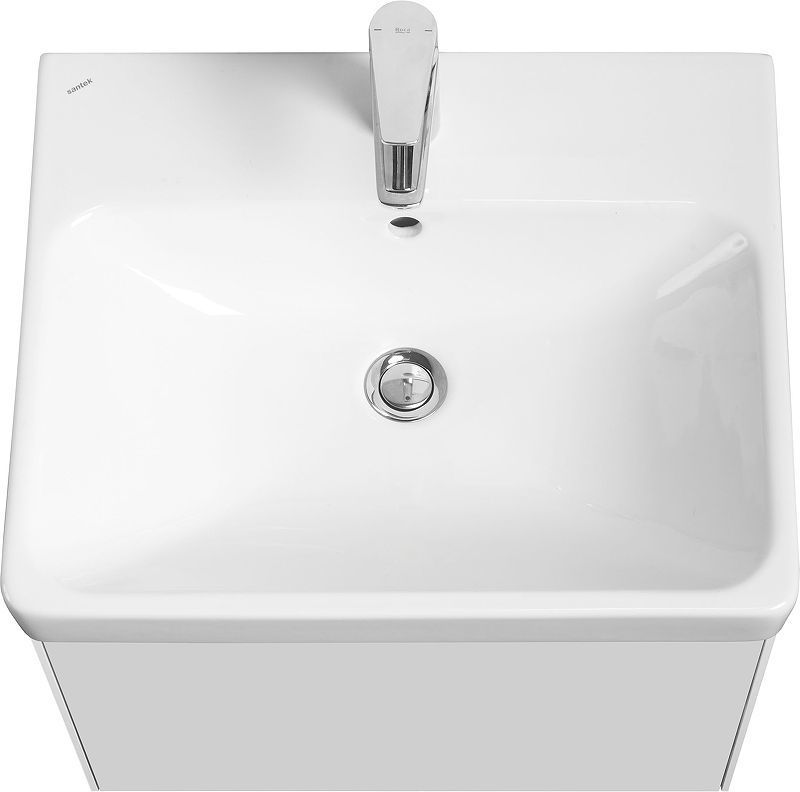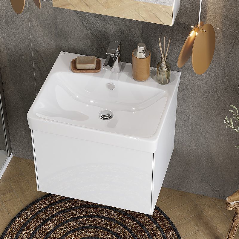 Тумба подвесная Акватон Асти 55 см с раковиной Santek Адриана 55, цвет белый глянцевый.