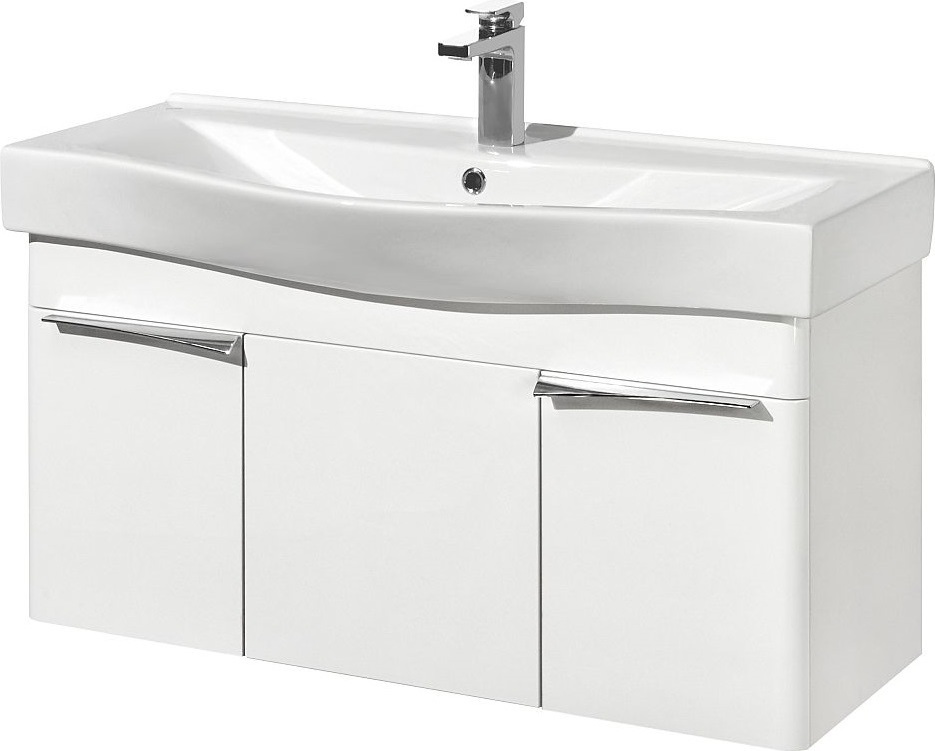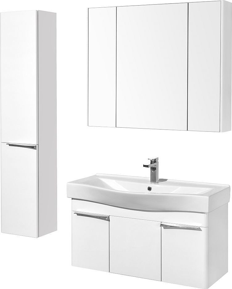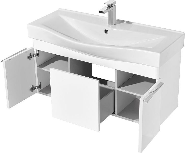 Тумба подвесная Акватон Беверли 100 см 1A236701BV010 с раковиной Santek Беверли 100 см 1WH302502, цвет - белый глянец.