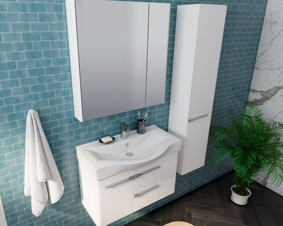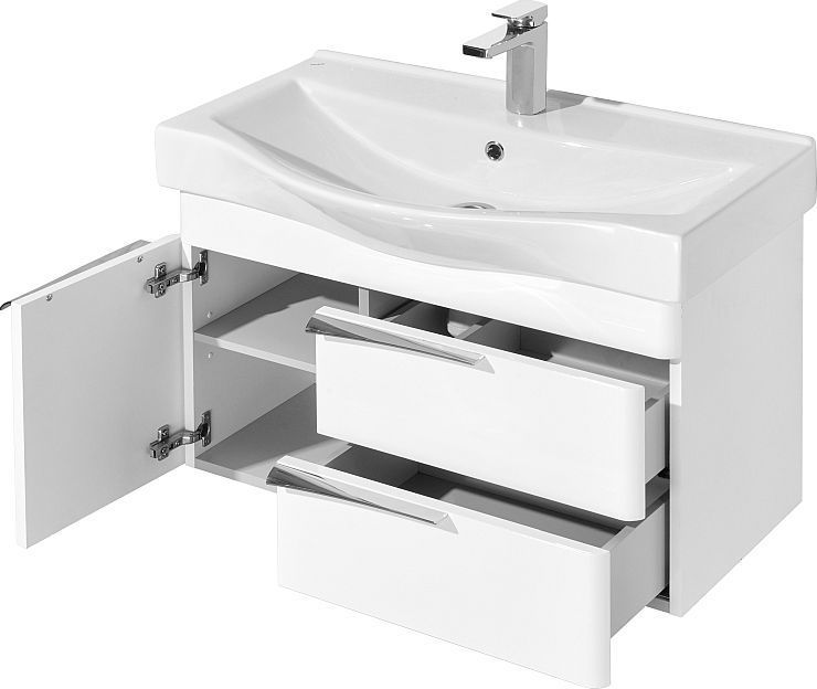 Тумба подвесная Акватон Беверли 80 см с раковиной Santek Беверли 80 см, цвет - белый глянец.