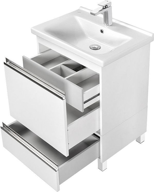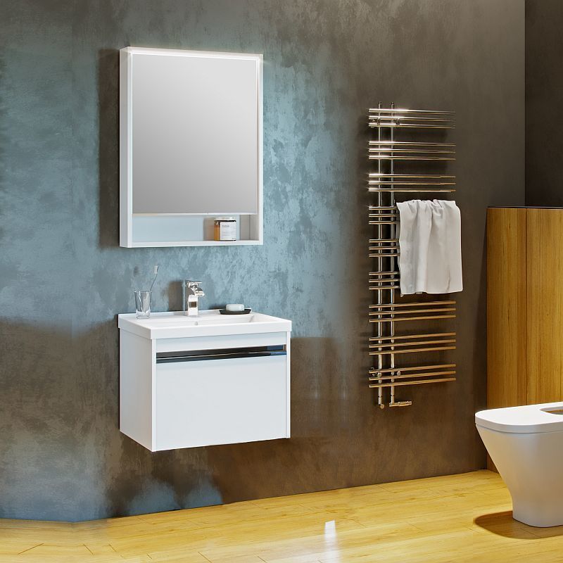 Тумба подвесная Акватон Капри 60 см с раковиной Миранда 60 см, цвет - белый глянец.