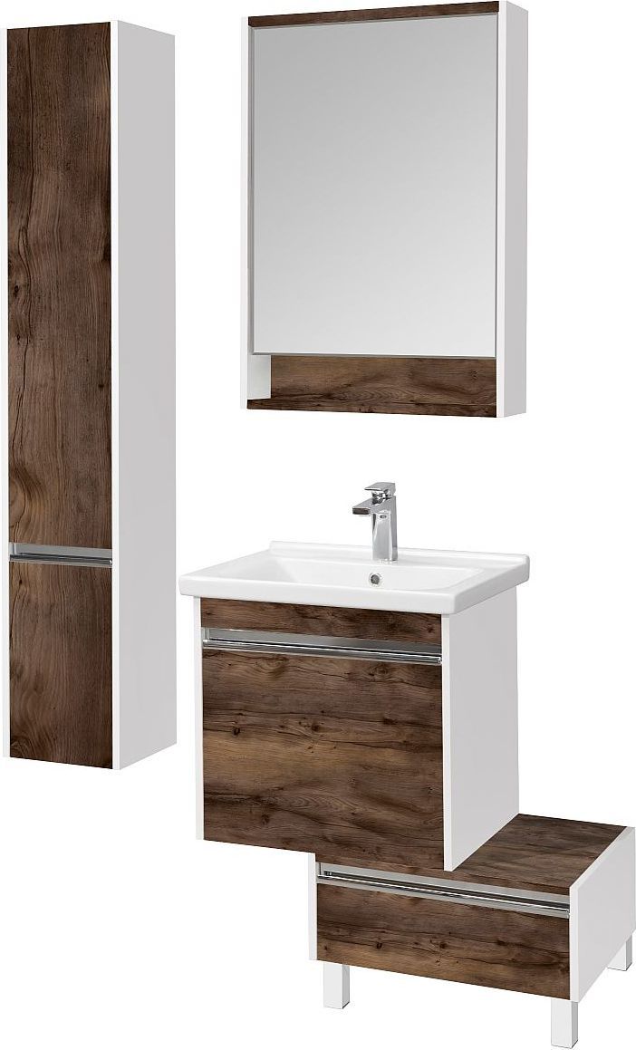 Тумба подвесная Акватон Капри 60 см с раковиной Миранда 60 см, цвет - белый глянец/таксония темная.