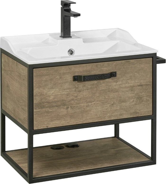 Тумба подвесная Акватон Лофт Фабрик 65 см 1A242301LTDY0 с раковиной Фабиа 65 1A708731FB010, цвет мебели - дуб кантри, цвет фурнитуры - черный.