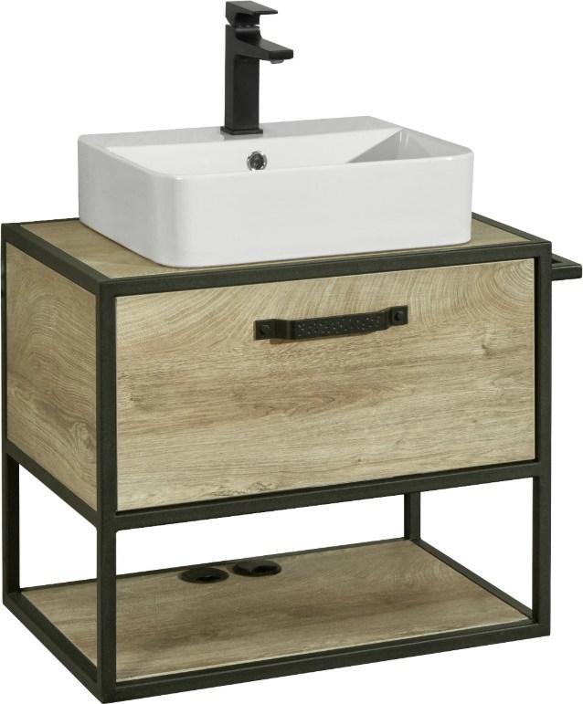 Тумба подвесная Акватон Лофт Фабрик 65 см 1A242301LTDU0 с раковиной Фабиа 65 1A708731FB010, цвет мебели - дуб эндгрейн, цвет фурнитуры - черный.