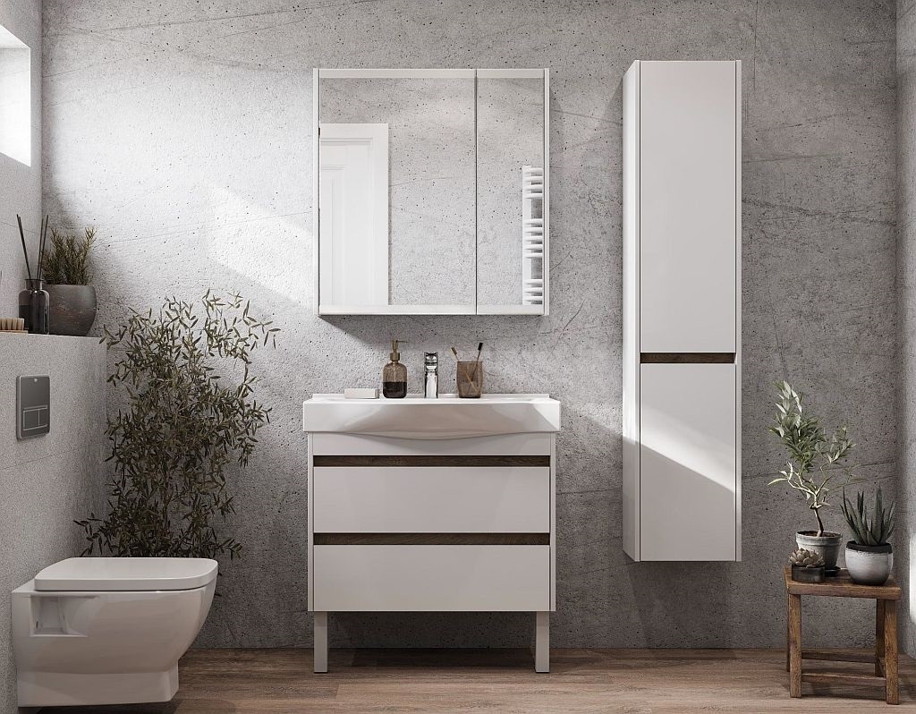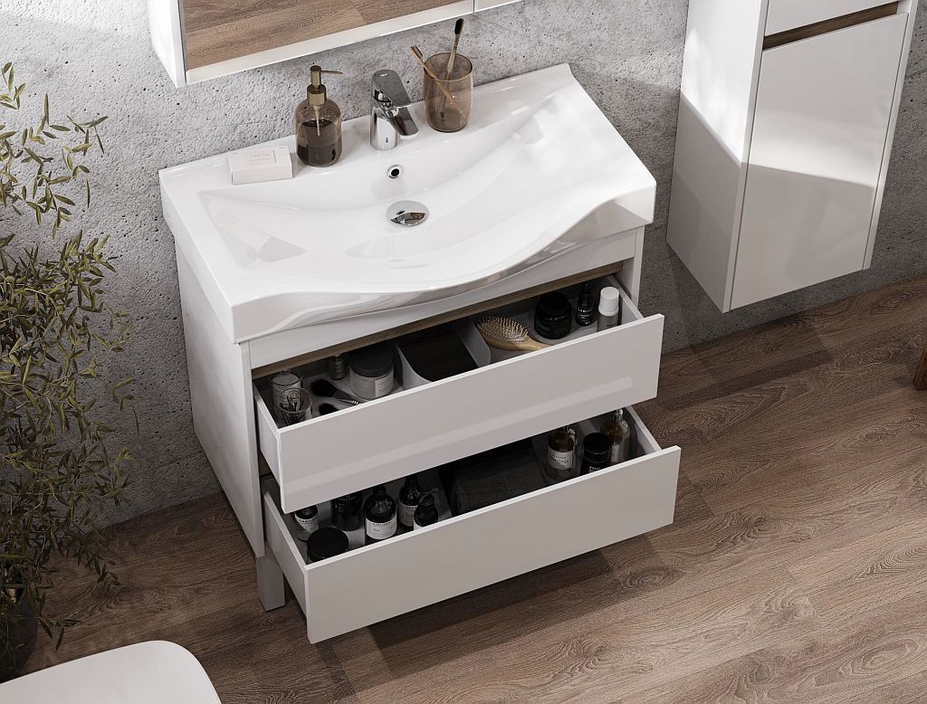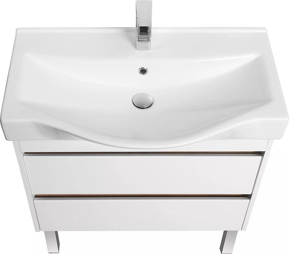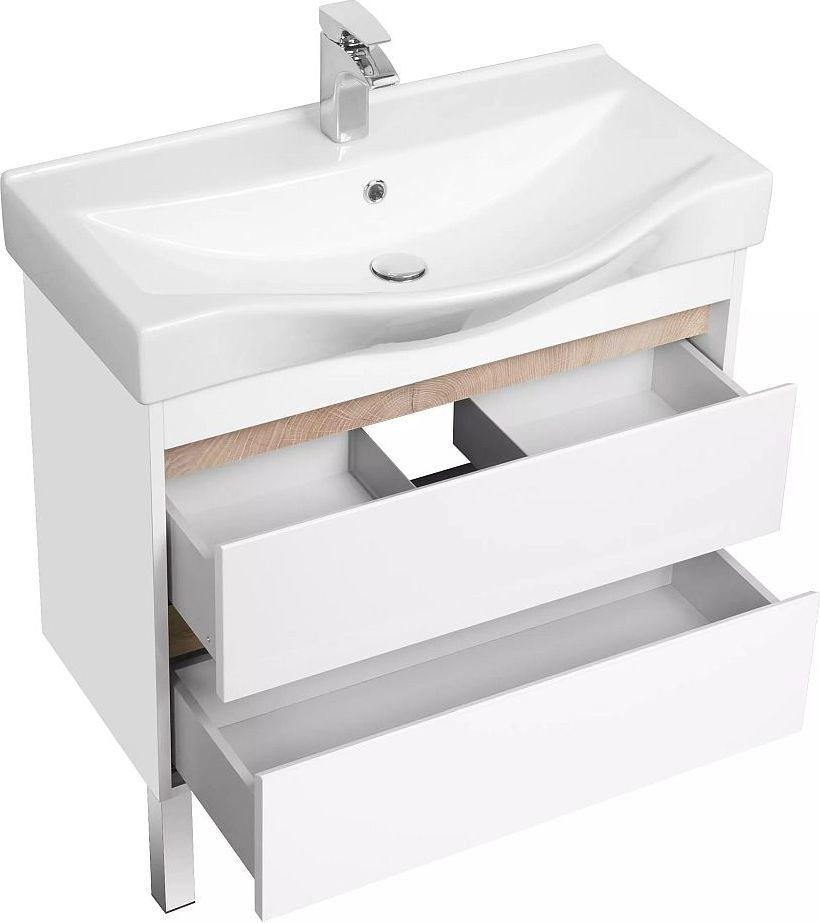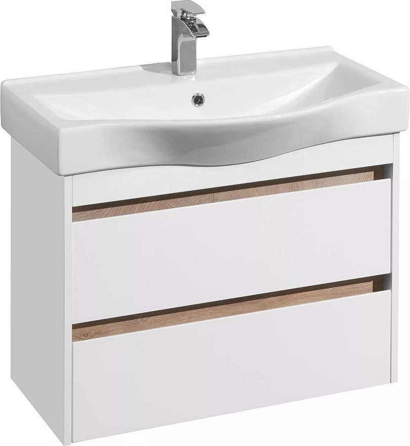 Тумба подвесная с раковиной Акватон Нортон 80 см 1A248901NT010 с раковиной Беверли 80, цвет белый глянцевый/дуб эндгрейн.