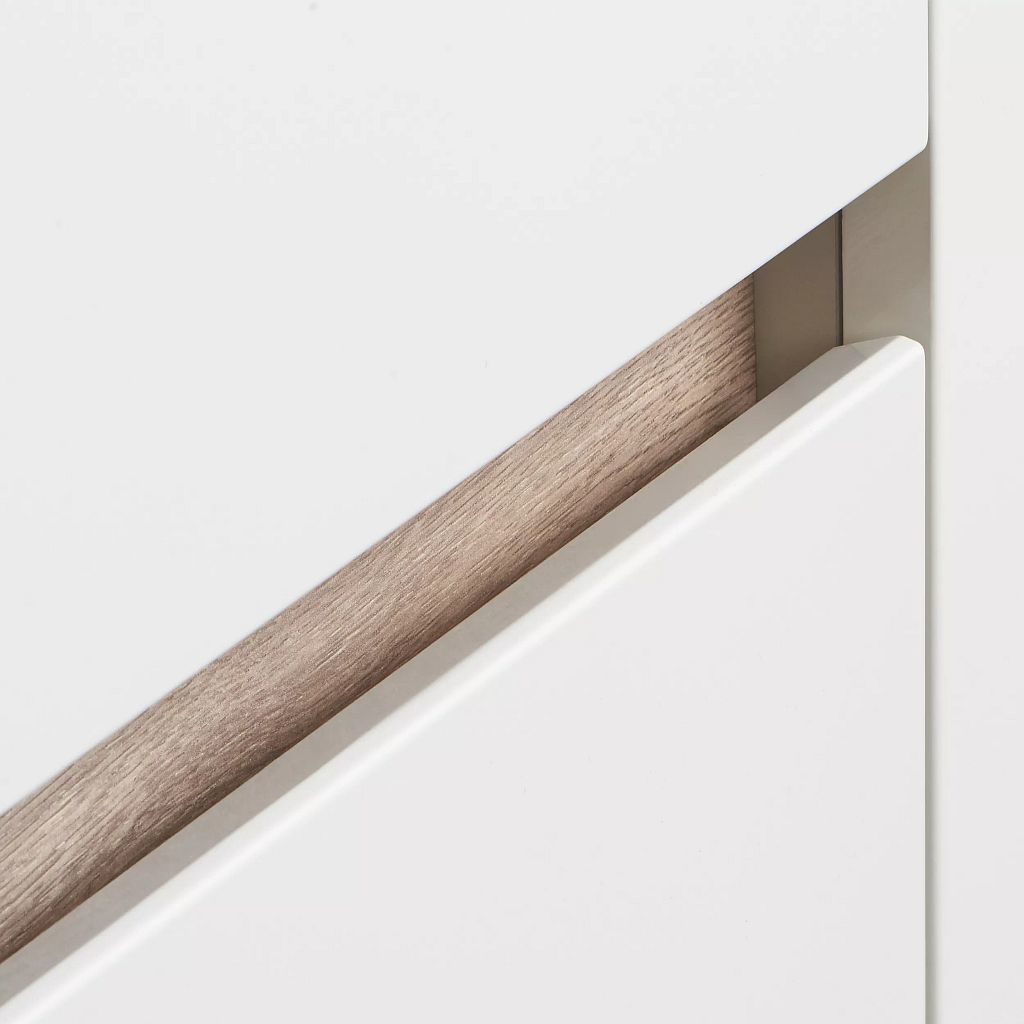- На тумбе нет выступающих деталей и фурнитуры, открытие ящиков реализовано за счет удобного выреза на фасаде