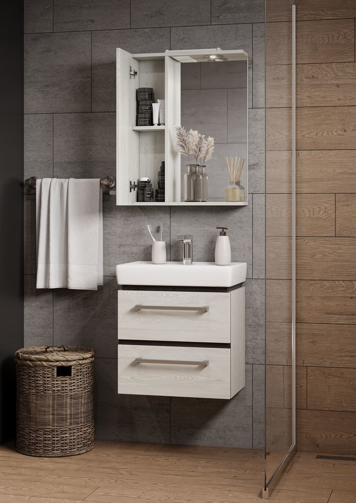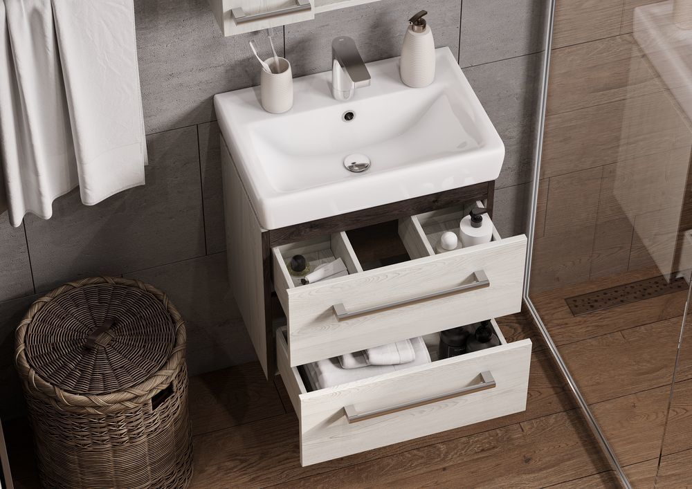 Тумба подвесная Акватон Ронда 55 см с раковиной Тигода 55, цвет дуб соммерсет.