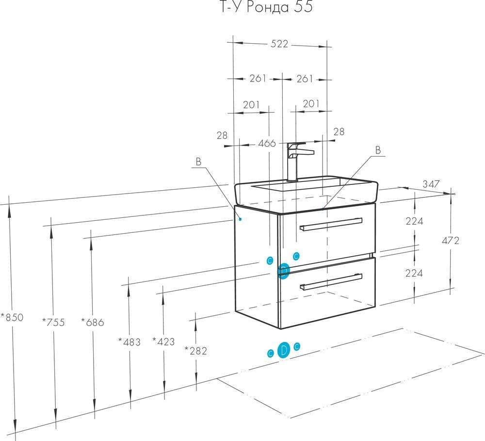 Характеристики тумба с раковиной Акватон (1A2076K1RSC20)