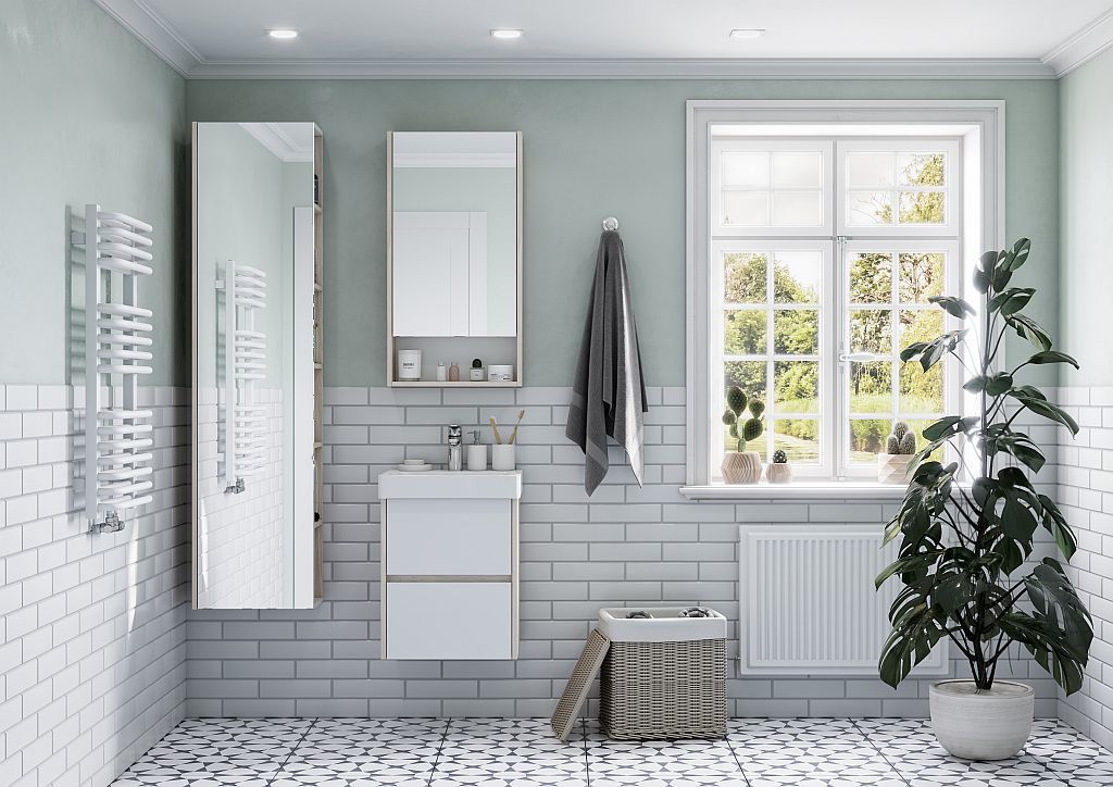 Тумба подвесная Акватон Сканди 45 см 1A251601SDB20 с раковиной Адриана 45, направляюшие скрытого монтажа PUSH-to-OPEN, цвет белый глянцевый/дуб верона. Можно использовать в двух вариантах: подвесную или дополнительно приобрести опоры 1A222703SI000.