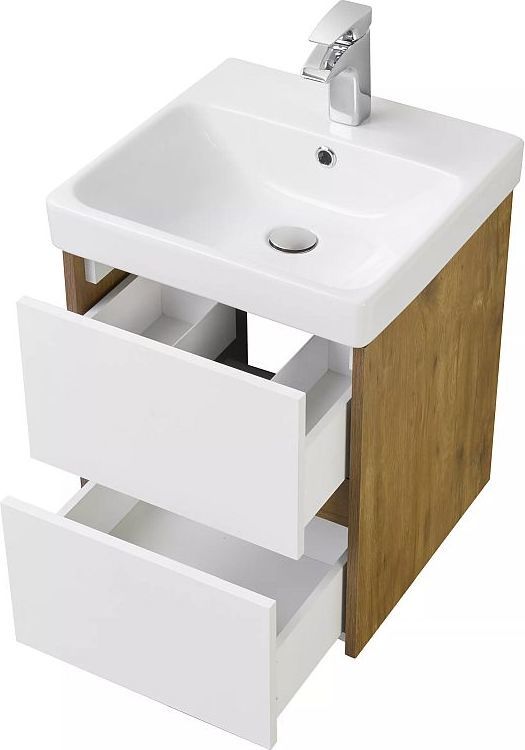 Тумба подвесная с раковиной Акватон Сканди 45 см 1A2516K0SDZ90, белый/дуб рустикальный