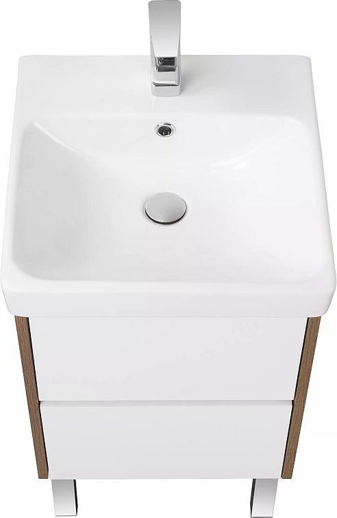 Тумба подвесная Акватон Сканди 45 см 1A251601SDZ90 с раковиной Адриана 45, направляюшие скрытого монтажа PUSH-to-OPEN, цвет белый глянцевый/дуб рустикальный. Можно использовать в двух вариантах: подвесную или дополнительно приобрести опоры 1A222703SI000.