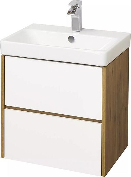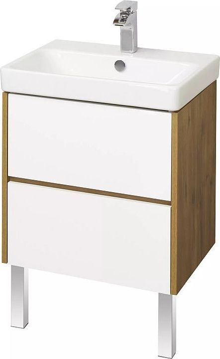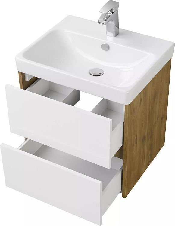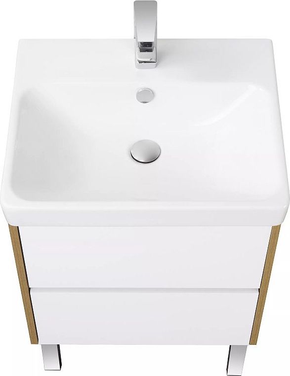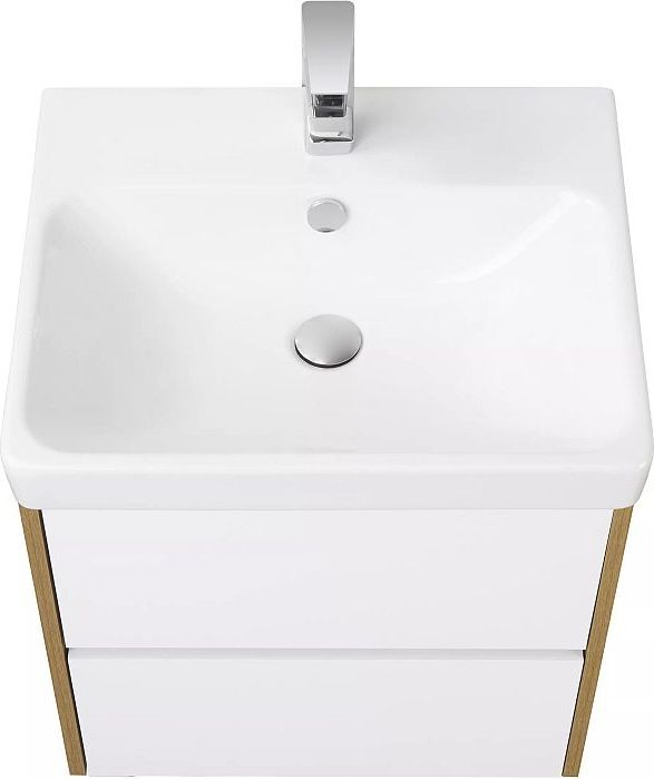 Тумба подвесная Акватон Сканди 55 см 1A251701SDZ90 с раковиной Адриана 55, направляюшие скрытого монтажа PUSH-to-OPEN, цвет белый глянцевый/дуб рустикальный. Можно использовать в двух вариантах: подвесную или дополнительно приобрести опоры 1A222703SI000.