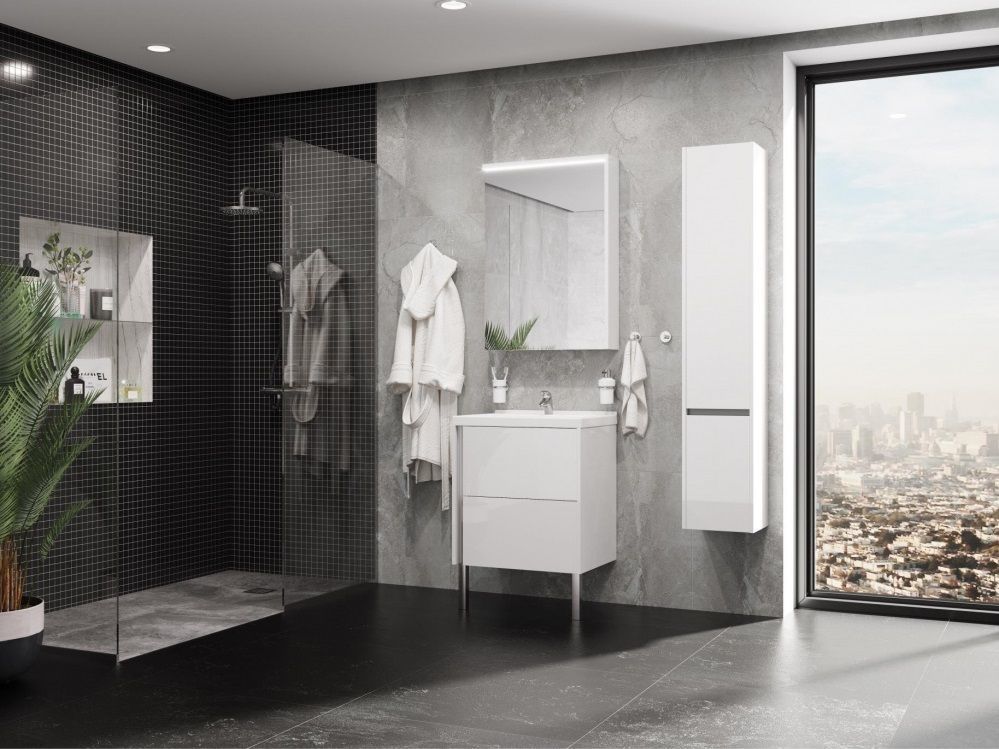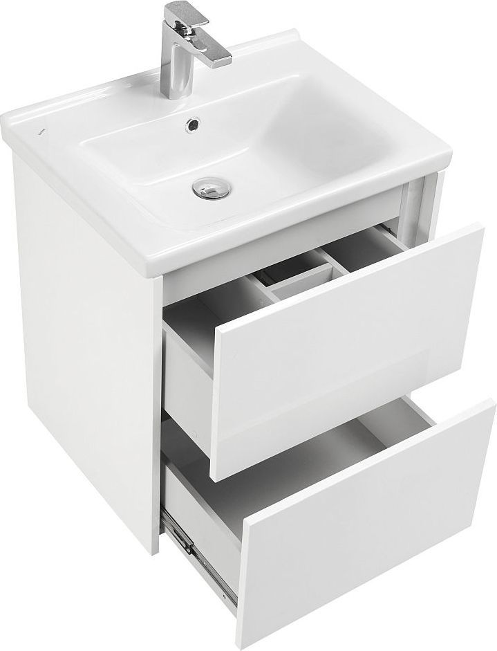 Тумба подвесная Акватон Стоун 60 с раковиной Миранда 60 см, цвет - белый глянец.