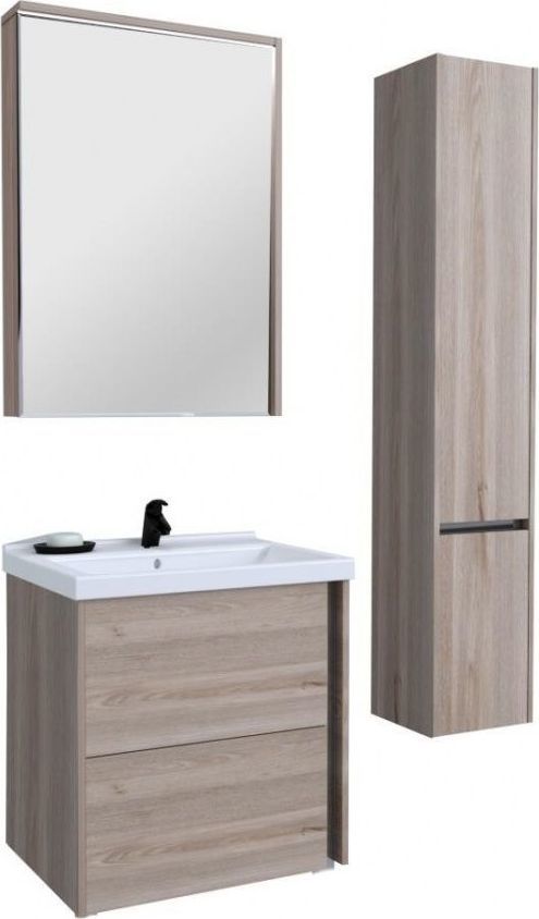 Тумба подвесная Акватон Стоун 60 с раковиной Миранда 60 см, цвет - сосна арлингтон.