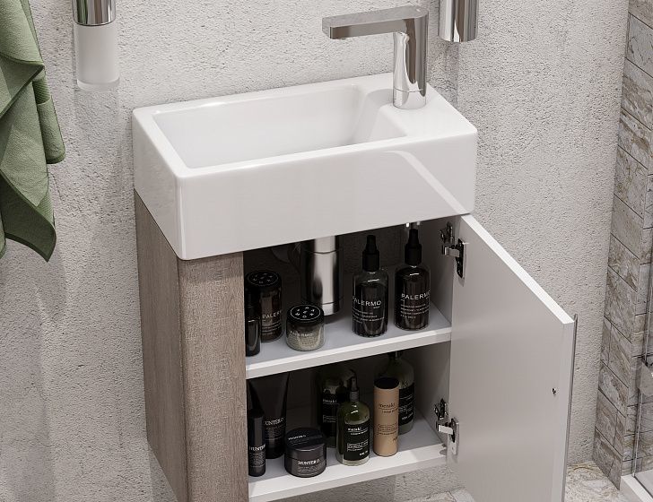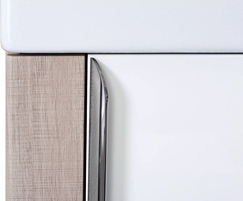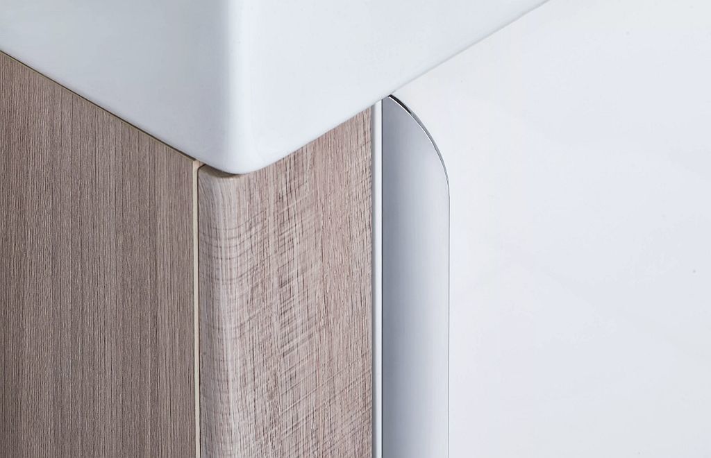 - Распашной фасад-створка открывается с помощью вертикально установленной ручки и оборудован петлями с интегрированной системой плавного закрывания, благодаря чему эксплуатация тумбы становится практически бесшумной