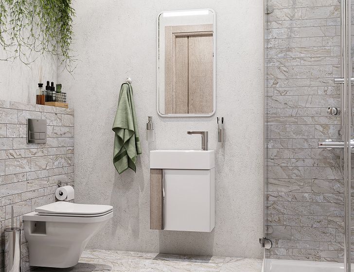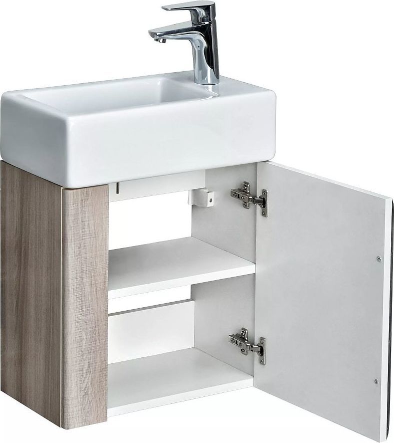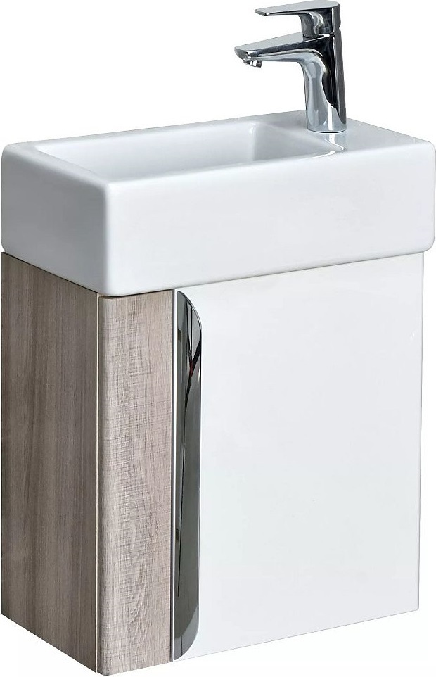 Тумба подвесная Акватон Вита 44 см 1A2214K1VTD70 с раковиной Эрис 46 см, цвет белый глянцевый/ясень шимо.