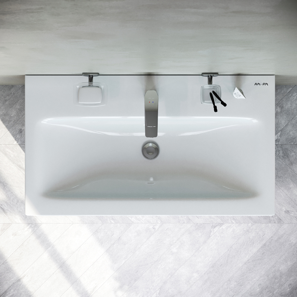 Тумба подвесная с раковиной Am.Pm Gem 75 см M90FHX07522WG, белый глянец