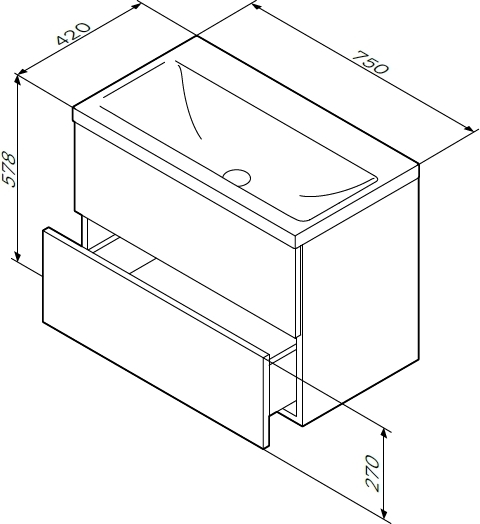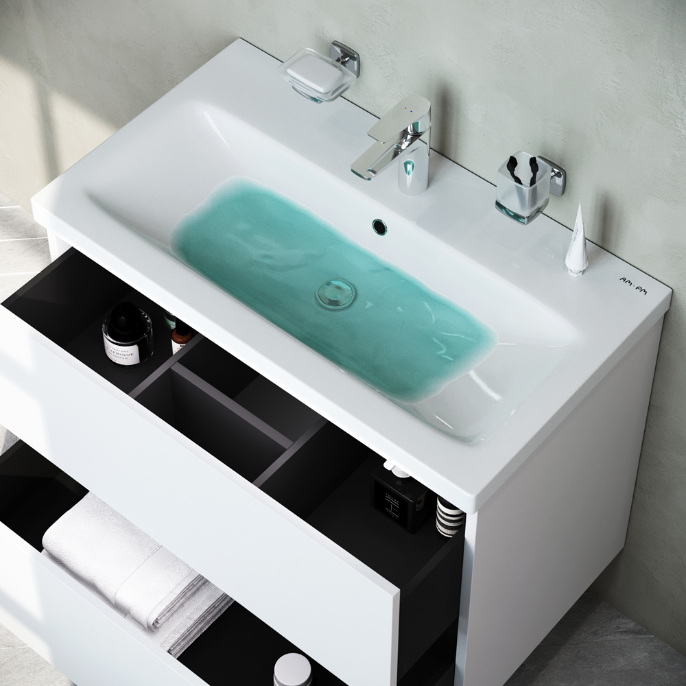 Тумба подвесная AM.PM Gem 75 см M90FHX07522WG в комплекте: раковина 75 M90WCC0752WG, 2 ящика, цвет белый глянец.