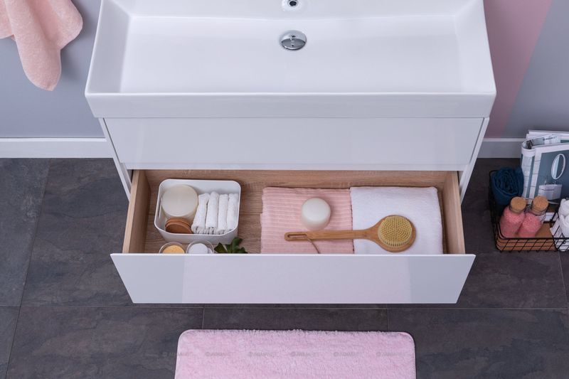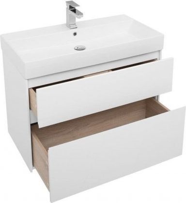 Тумба подвесная Aquanet Бруклин 85 см с раковиной Sanovit 85 Slim Synergy, 2 выдвижных ящика, цвет белый.