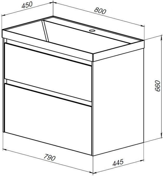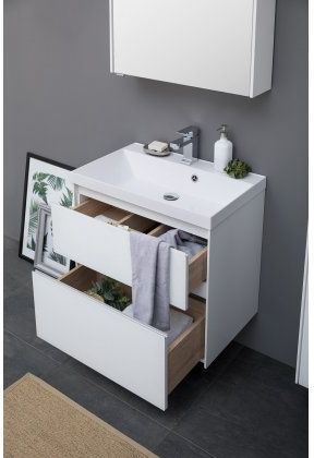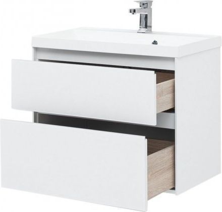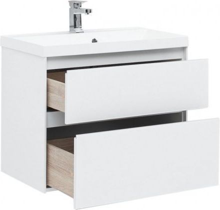 Тумба подвесная Aquanet Гласс 80 см с раковиной Орлеан 80, 2 выдвижных ящика, цвет белый.